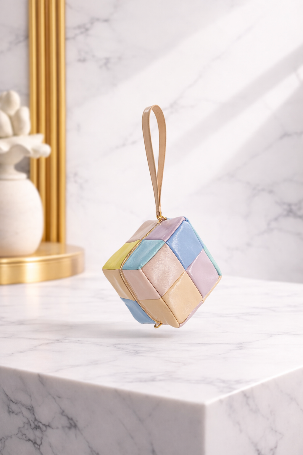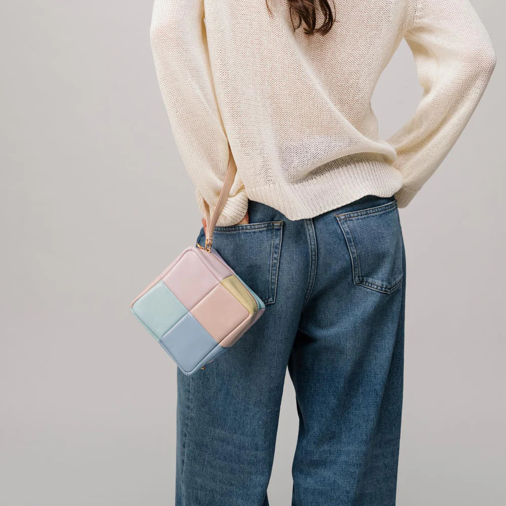 Designed for playful sophistication, this mini clutch blends comfort and contemporary style. Crafted from premium padded leather, the quilted grid construction adds texture and dimension, while the pastel color-blocking brings a fresh, modern feel.